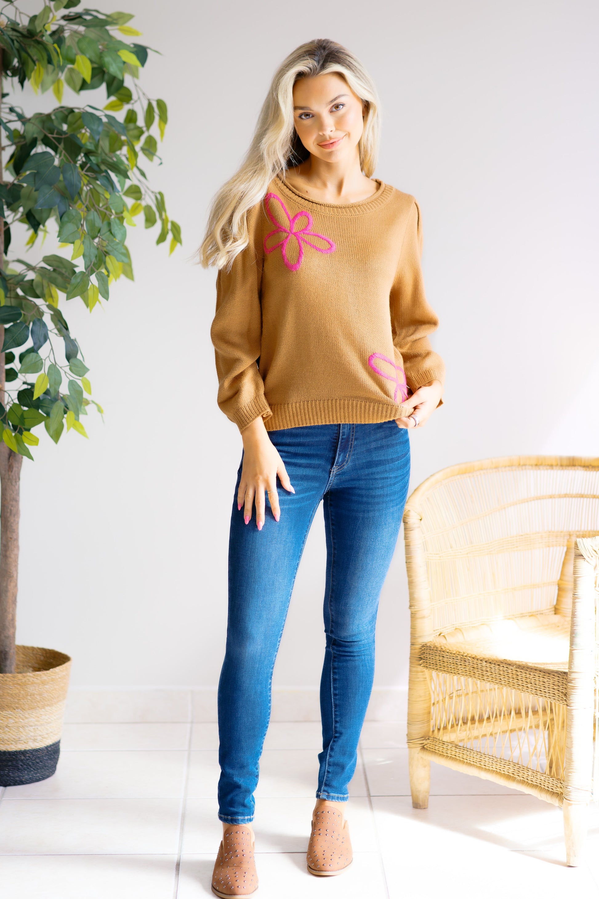 Embrace the charm of spring with the Falling for Florals Top. This fun Floral stitch top brings feminine touch to any outfit, perfect for brightening your day. Crafted for comfort and style, this top pairs effortlessly with jeans or skirts, making it a versatile addition to your wardrobe. Elevate your look and feel confident wherever you go with this must-have floral essential.