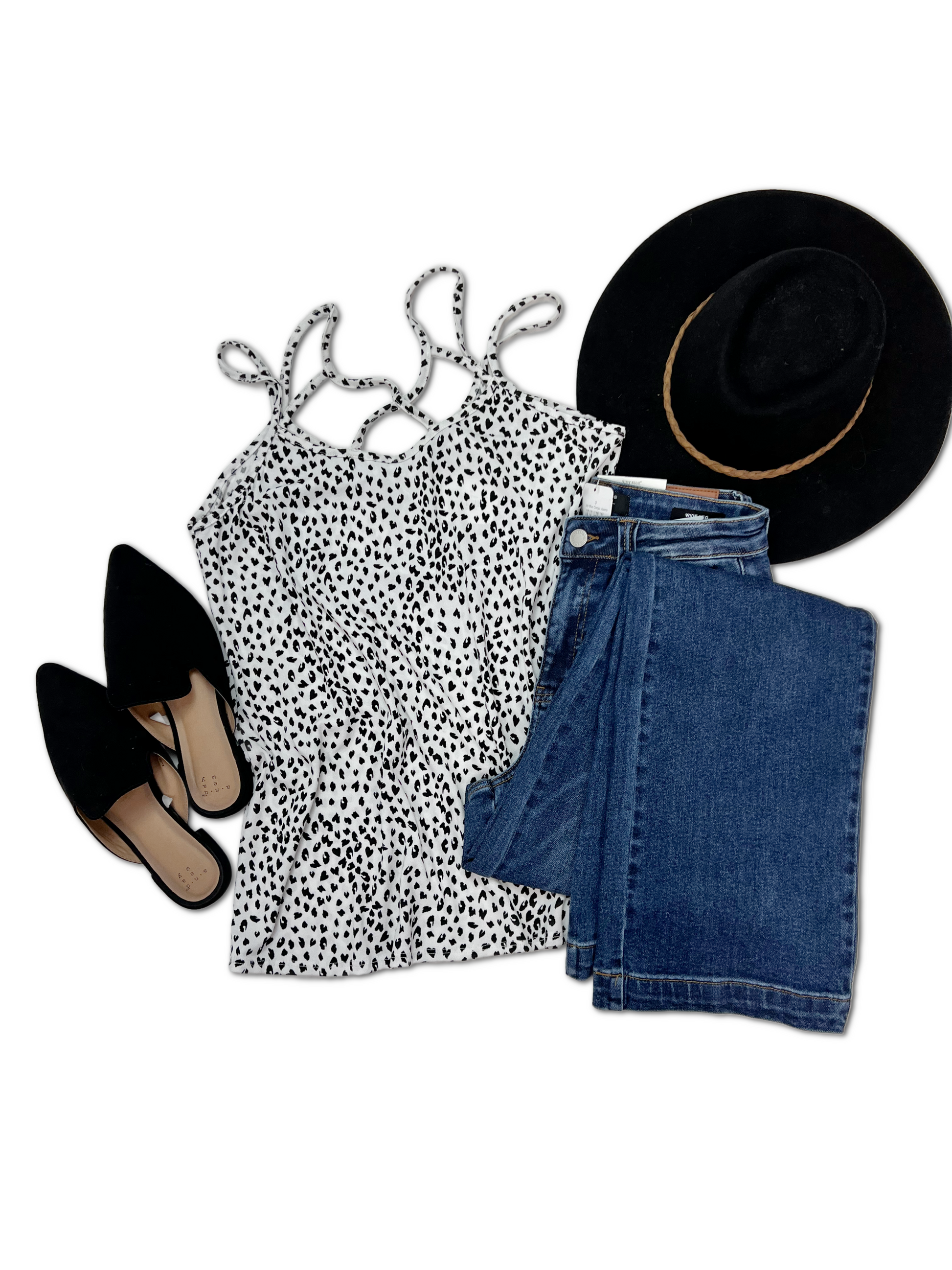 Unleash your wild side with our Little Bit of Edge Tank. Featuring a playful animal print and delicate spaghetti straps, this relaxed fit tank is perfect for adding a touch of sass to any outfit. Turn heads with its criss cross details and embrace your inner rebel. (Pun intended, of course!)