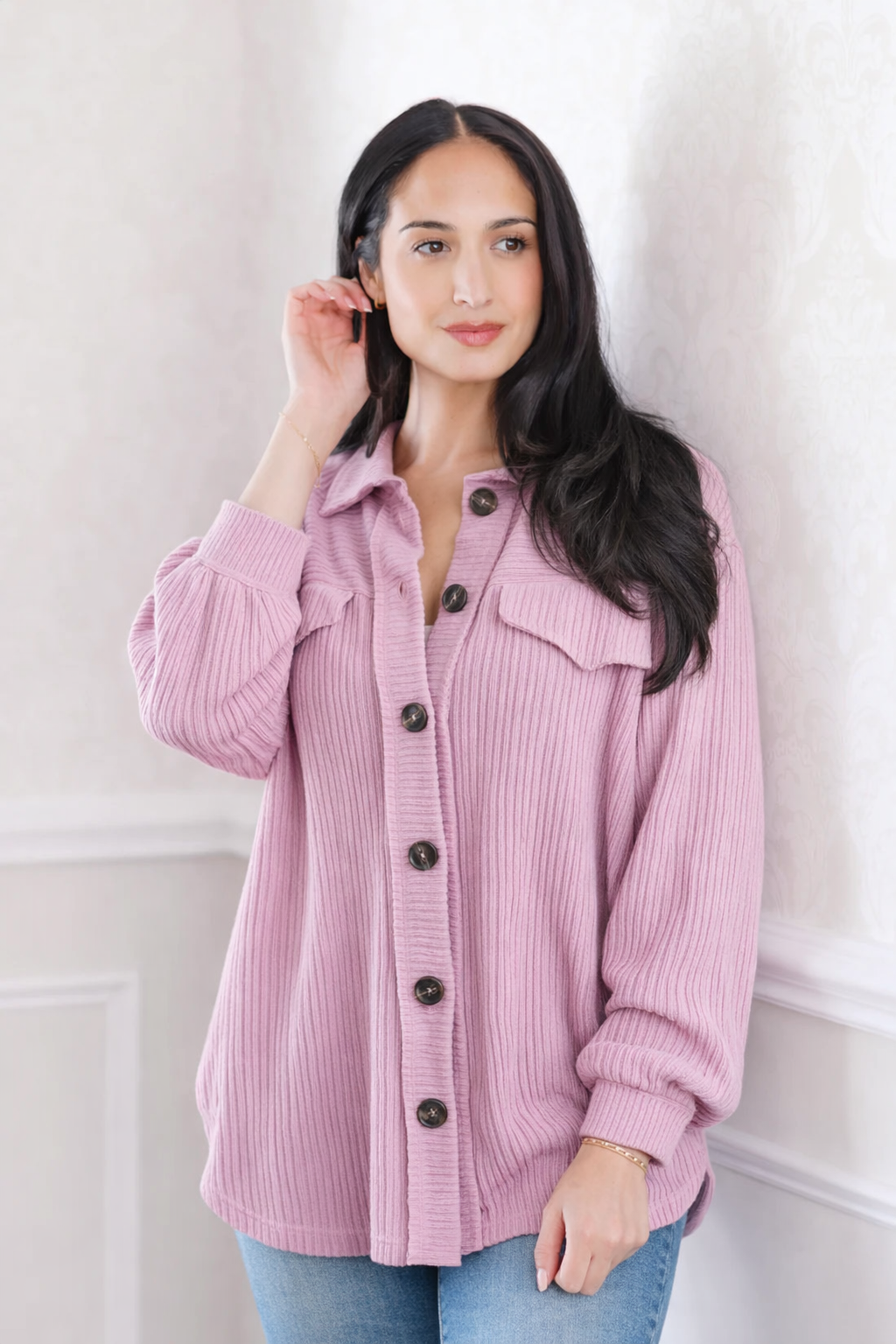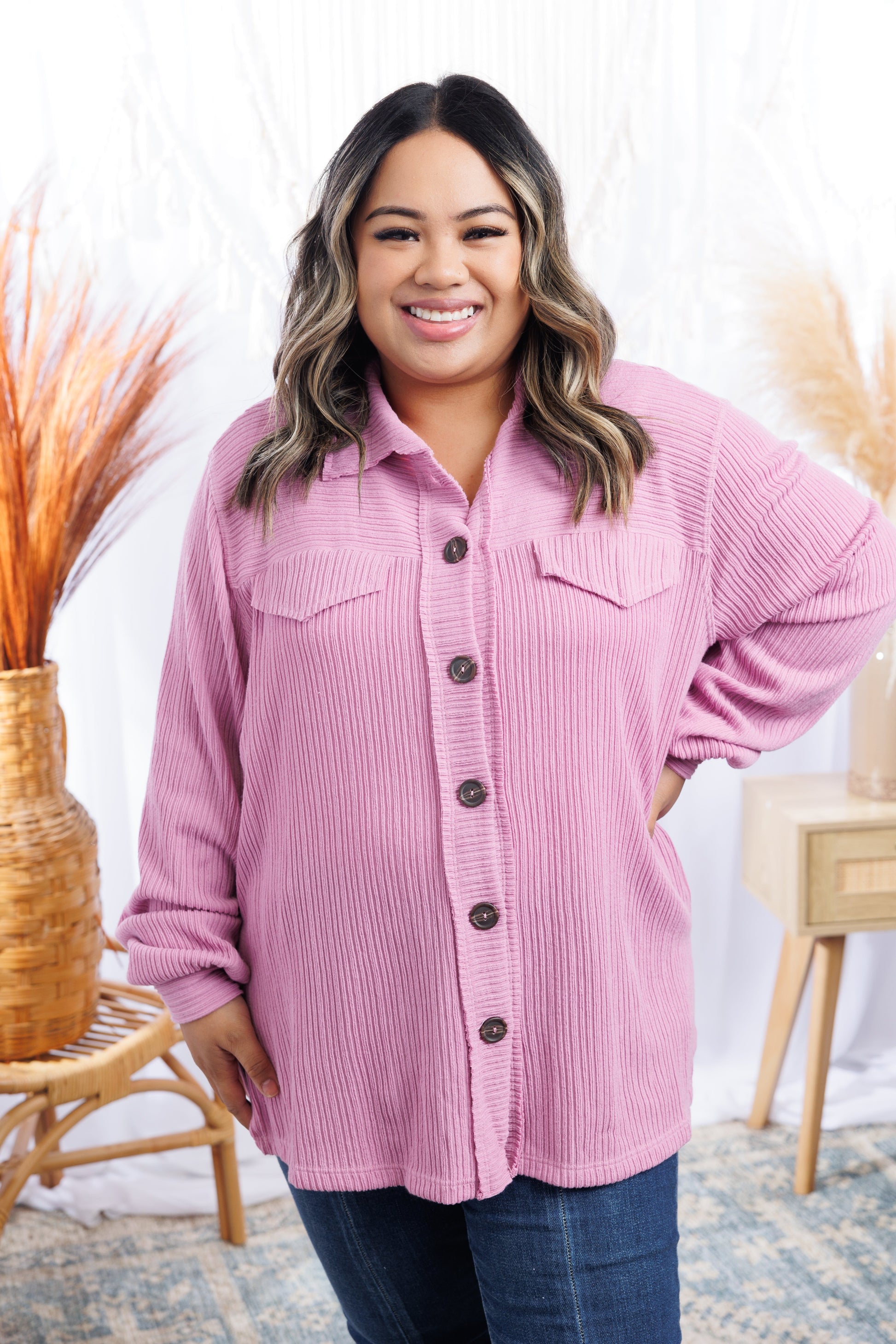 The Tulip Dreamin' Shacket is your go-to for chillier days! With a textured knit, collar, and button closure, it's sure to keep you cozy. Plus, long balloon sleeves and front pockets give an extra bit of style. And in a perfect Spring lavender, you'll be dreamin' of tulips in no time!